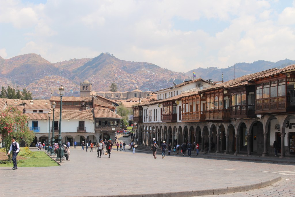 Au cœur de Cusco se trouve la Place des armes (de nombreuses villes au Pérou ont leur place principale se dénommant ainsi), autour de laquelle on trouve des restaurants, des tour-opérateurs et quelques boutiques de souvenirs sous des arcades coloniales.
