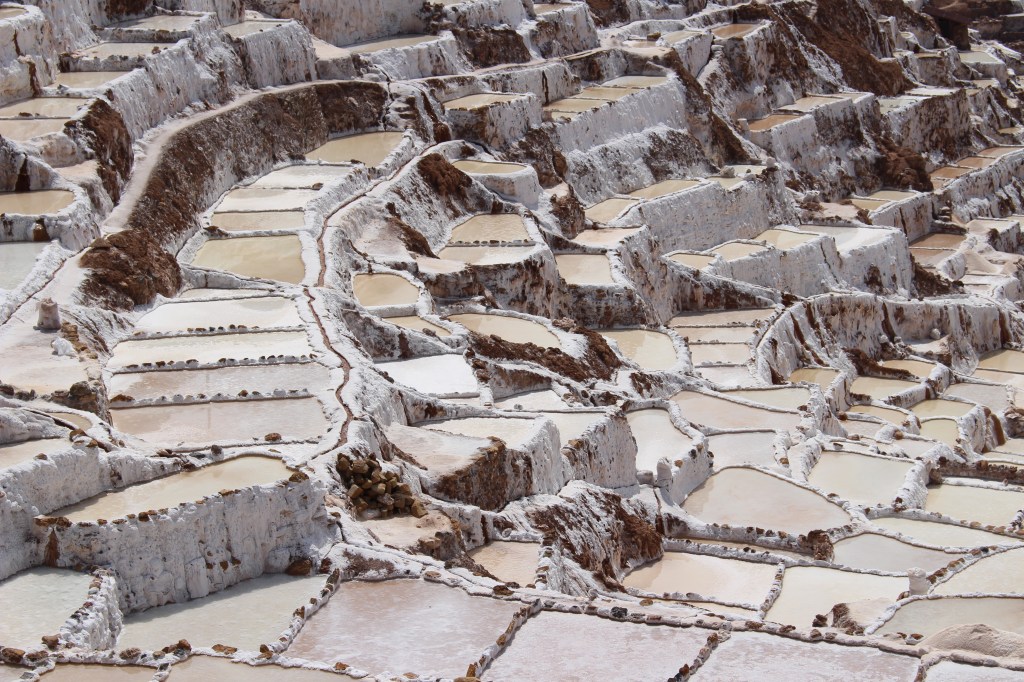 Il est composé de milliers de bassins d’eau salée, suspendus en terrasses à flanc de montagne. Grâce à l’évaporation de l’eau, les incas récoltent le sel qui reste en surface.