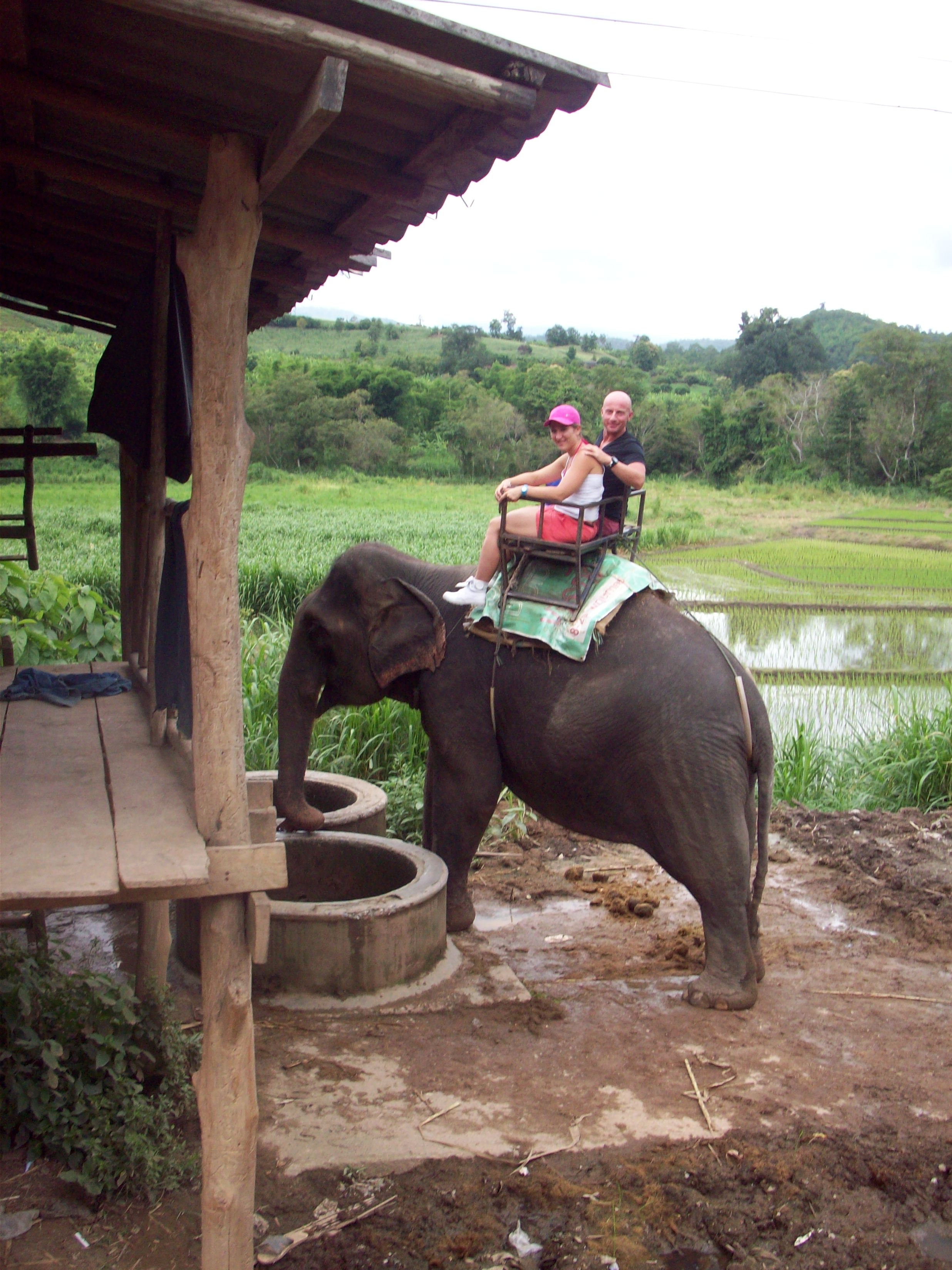 Nous avons ainsi donc fait une excursion qui comprenait une balade à dos d’éléphant, la visite d’un village typique du nord, une descente sur un radeau en bambou et une petite rando jusqu’à la baignade aux pieds d’une cascade.