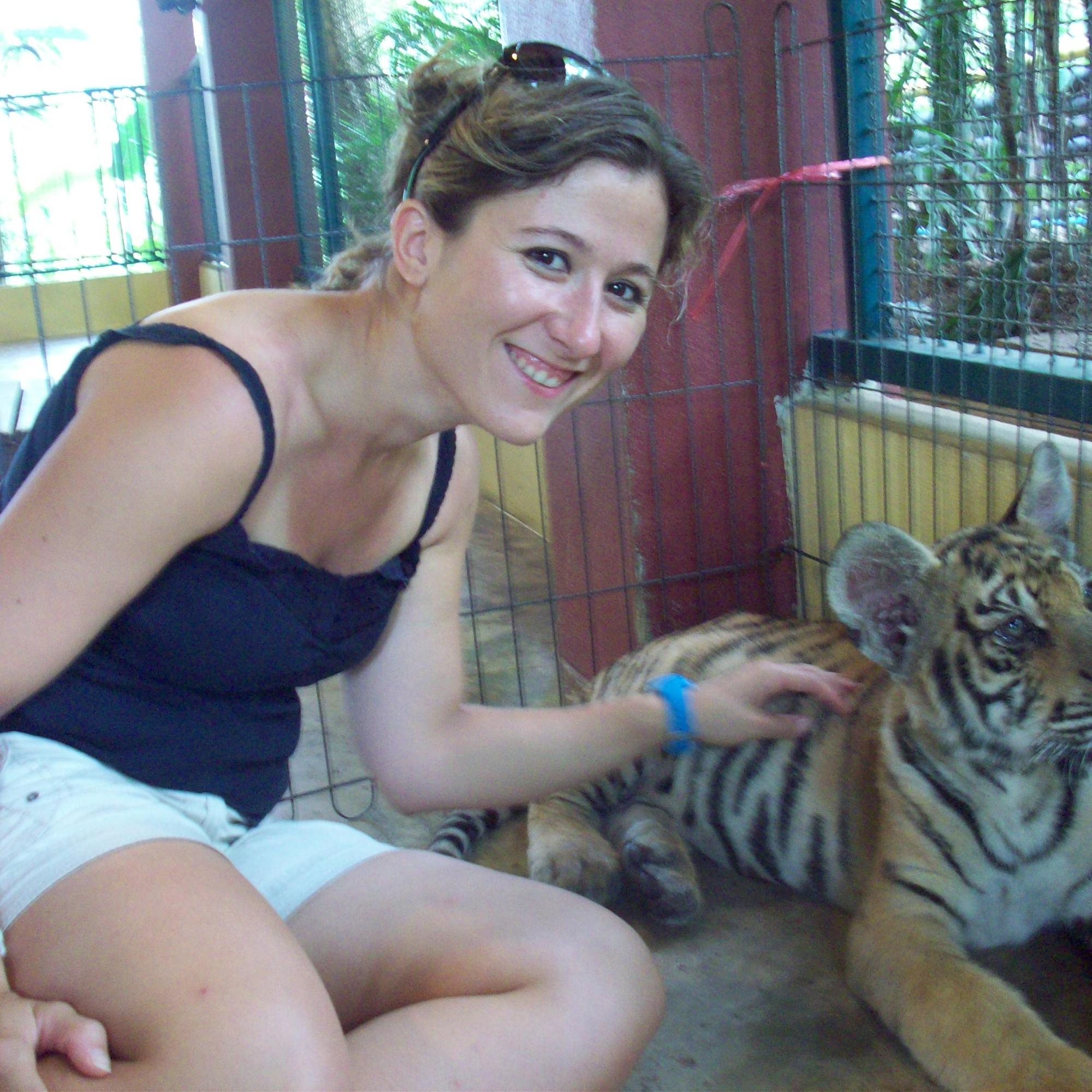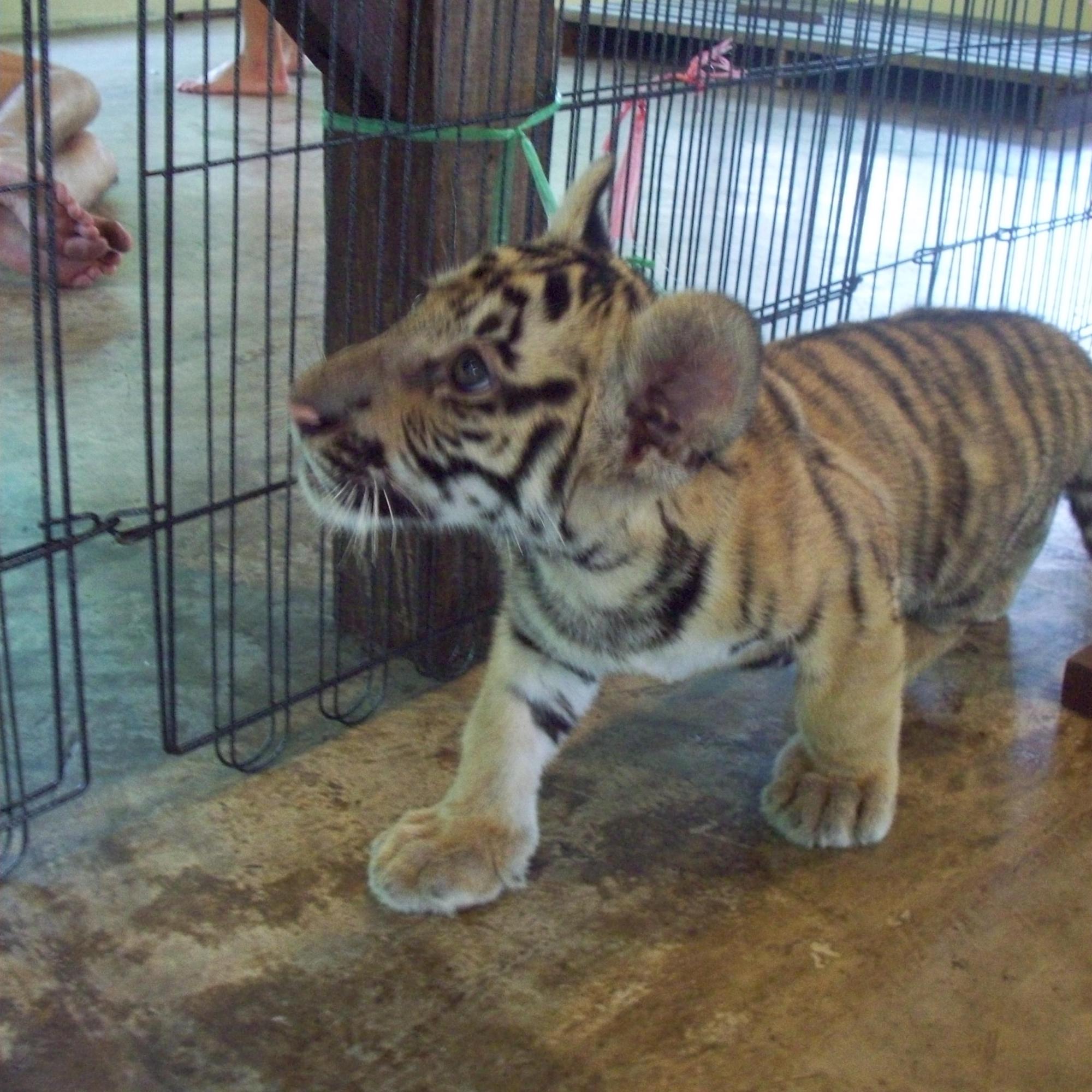 Nous avons aussi été visiter le Tiger Kingdom, à 18km du centre de Chiang Mai, centre où nous pouvons approcher les tigres de très près. Suivant le prix, on se trouve dans des cages avec des tigres plus ou moins grands (nous avons quand même payé 1240 THB à 2, soient 31€ pour voir les plus petits).