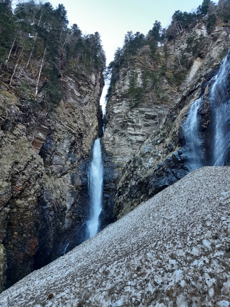 Après un passage à Peyragudes à l’heure du déjeuner, nous décidons l’après-midi d’aller à la cascade d’enfer. Nous avions vu des panneaux la veille lorsque nous sommes montés à la station de Superbagnères.