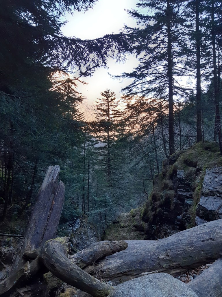 Nous mettons donc le GPS vers la Cascade d’Enfer, et nous nous garons sur le parking d’où partent de nombreuses randonnées dans la vallée du Lys (en été).