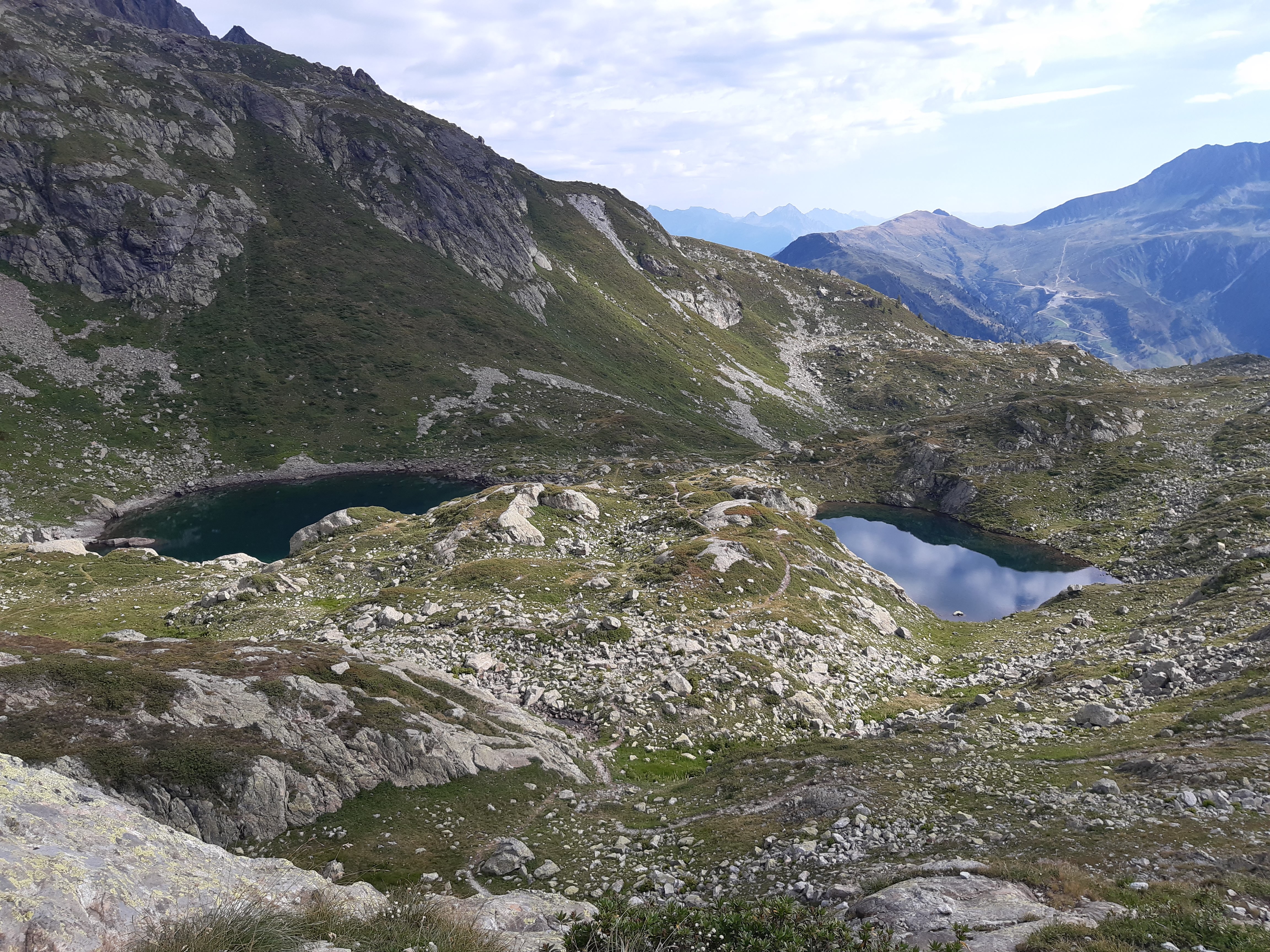 Pour le retour, on reprend le même chemin qu’à l’aller jusqu’à un gros cairn après les lacs des Chézerys, où on suit la direction du col des Montets sur la gauche.