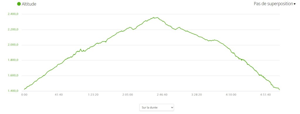 Au total, la randonnée aura duré 5h et fait un peu moins de 12km avec 1200 mètres de dénivelé positif (et forcément négatif au retour).