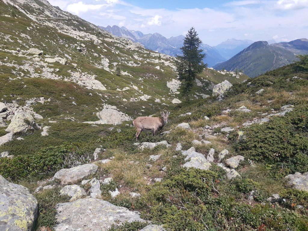 Le trajet retour est tout en descente, assez simple au début. Nous avons eu en plus la chance de voir un jeune bouquetin, pas très sauvage car j’ai réussi à l’approcher un peu.