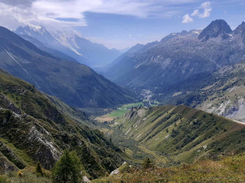 Pour le retour, nous prenons le même chemin, mais cette fois sans la télécabine. On a une vue prenante sur le village du Tour qui paraît vraiment petit d’en haut.