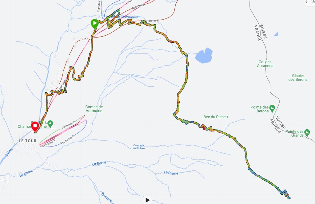 Le départ se fait au village Le Tour, où pour l’unique fois, nous prenons la télécabine jusqu’à Charamillon comme on nous l’a conseillé. (Le trajet en télécabine est très court, mais 35€…)