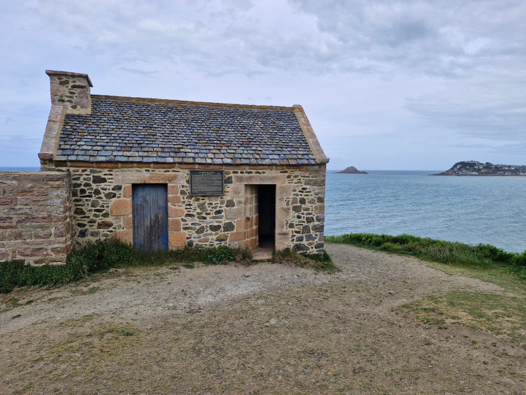 Le circuit est ensuite le même que celui du GR34, et longe le littoral. On découvre alors le corps de garde de la guette, construit au 18ème siècle pour abriter la compagnie des garde-côtes qui défendaient l’entrée du port.