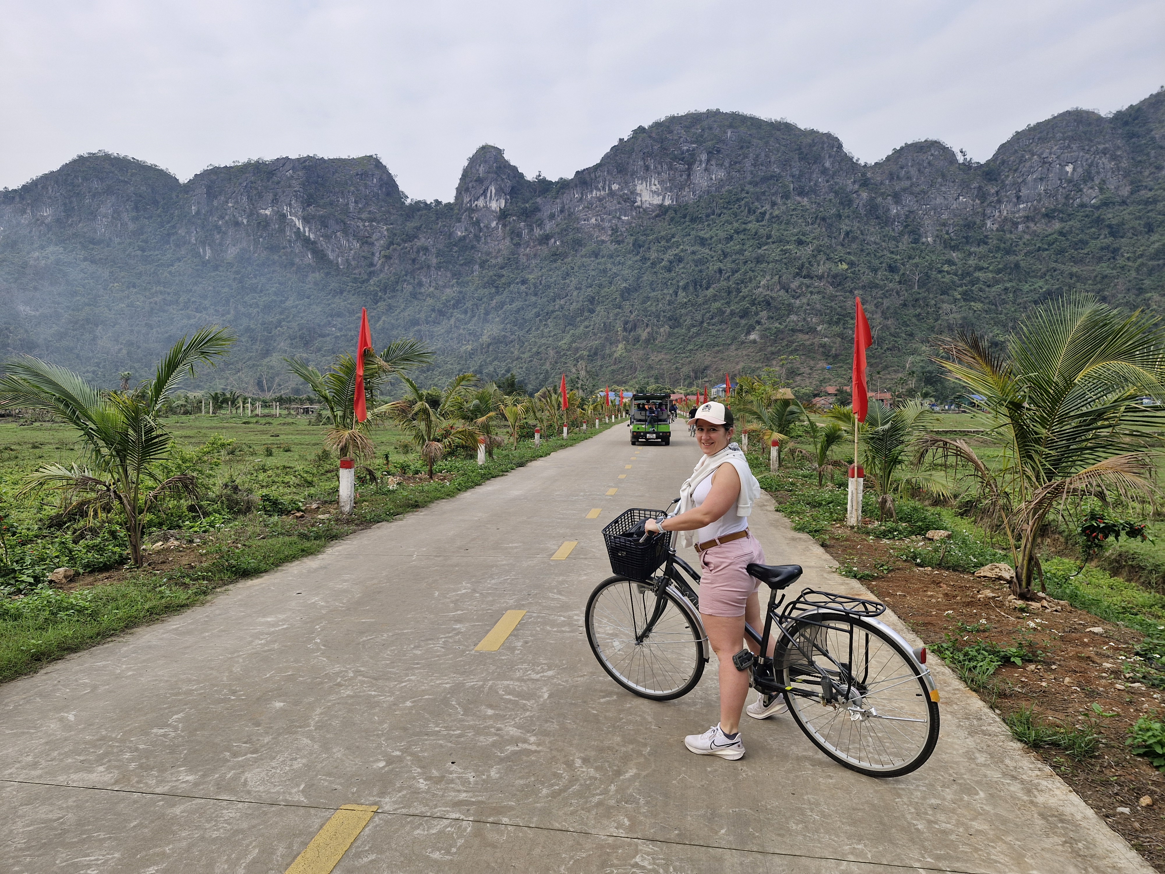 A 7h30, nous avions rendez vous sur le ponton de la jonque pour faire une excursion sur l’île de Cat Ba. Les jonques ne pouvant pas accoster de par leur taille, un petit bateau est venu nous chercher à bord pour nous débarquer sur l’île, où nous avons tous, ou presque, récupérer des vélos pour ensuite rejoindre le village de Viet Thai, à un peu moins de 5 km. (Il y a une navette pour ceux qui ne pédalent pas.)