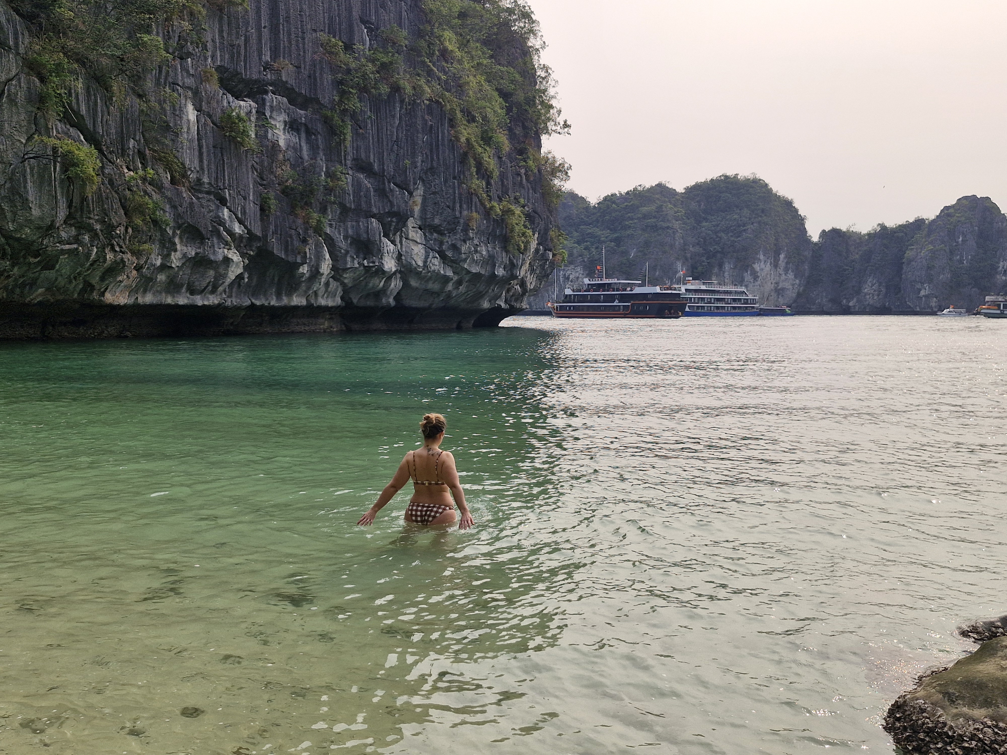 La baie d’Ha Long est très vaste, on ne peut donc pas tout visiter. Nous concernant, notre agence nous a proposé la baie de Lan Ha, où seuls les petites jonques peuvent aller, ce qui évite de se retrouver avec de gros bateaux et beaucoup de touristes.