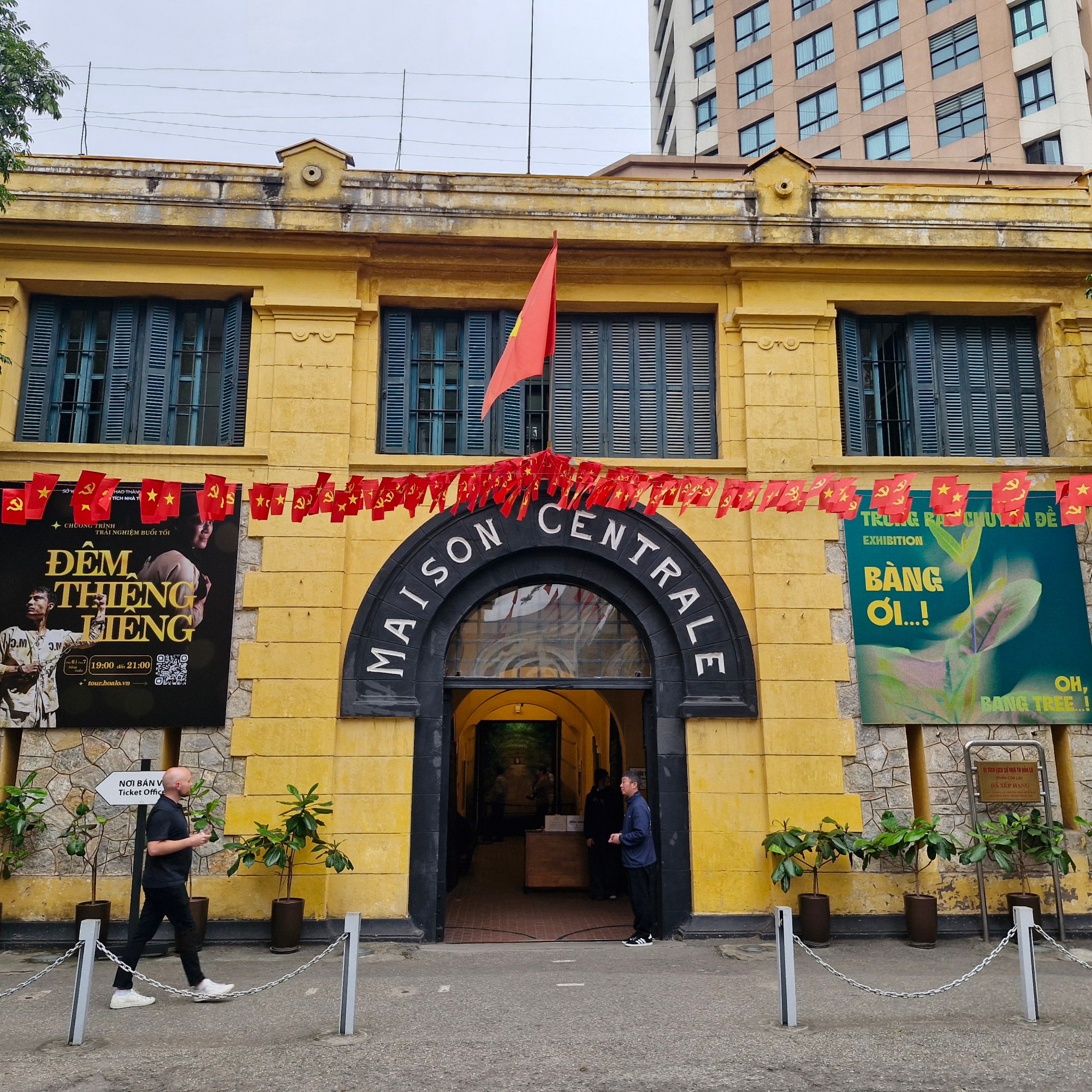 Ce n’est peut-être pas le monument le plus connu, mais c’est celui que nous avons visité en premier. Il n’est pas utile de prendre un audioguide français car toutes les explications sont traduites en français. En effet, cette prison a été construite en 1896 lorsque l’Indochine faisait partie de l’empire français, et se nomme même Maison Centrale comme on peut le voir au-dessus de la porte d’entrée.
