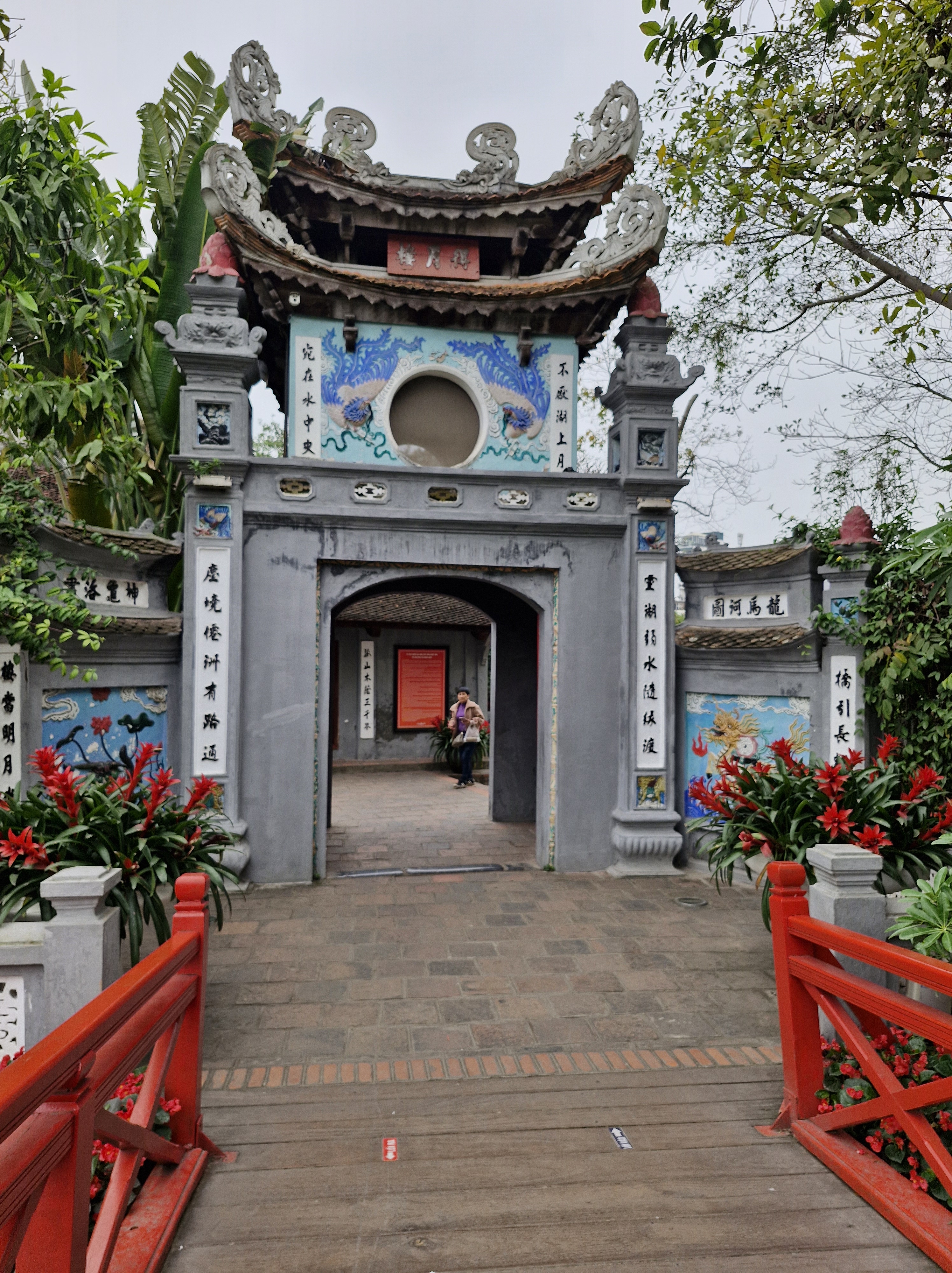 Et sur la rive nord, on accède par un joli pont rouge type japonais au temple Montagne de Jade. (L’entrée est payante (2€)). Il n’ y a pas grand chose à voir, si ce n’est une grande carapace bien conservée d’une tortue.