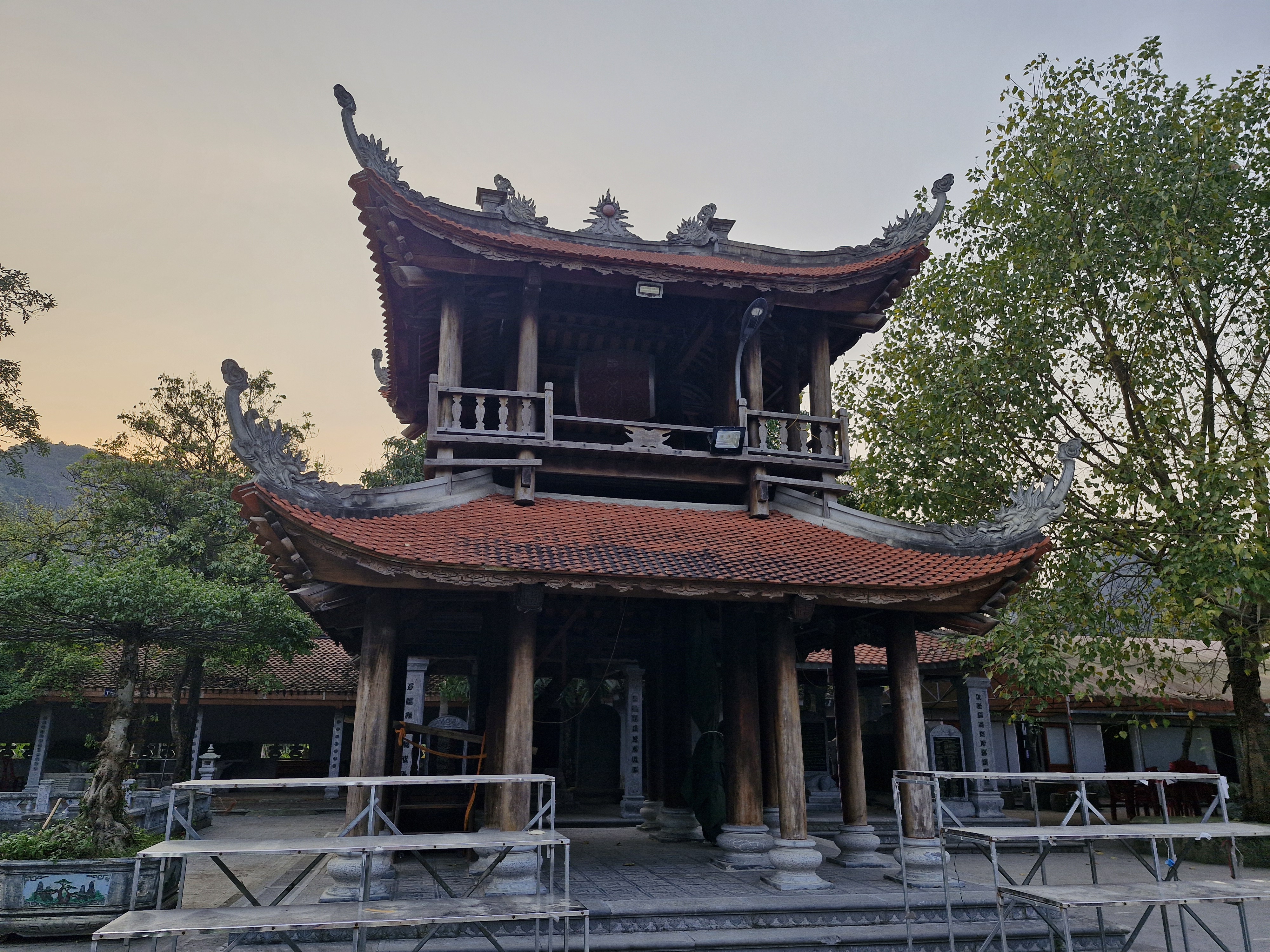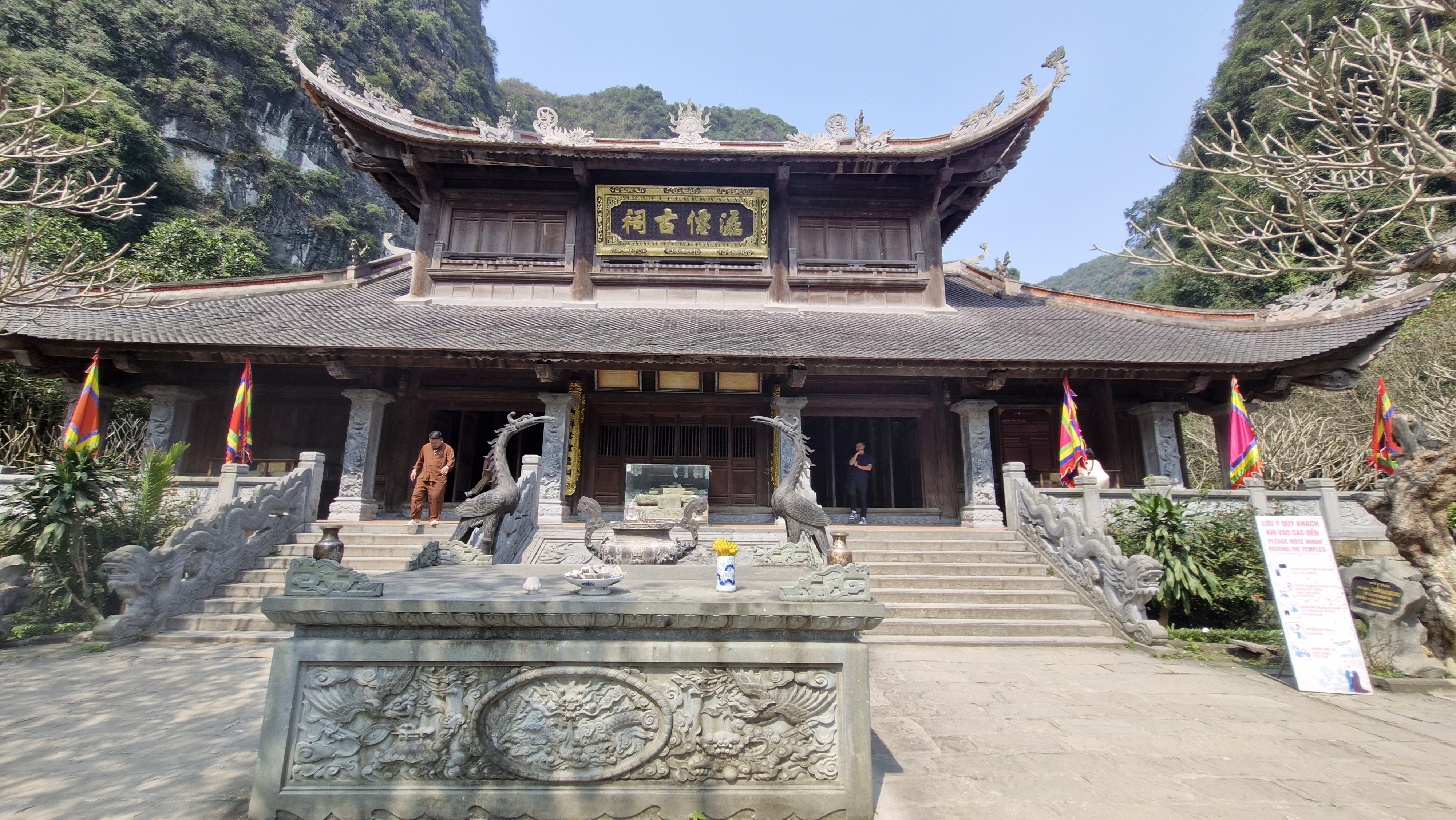 De retour à Tam Coc, après avoir repris des forces avec une crêpe, nous sommes allés voir le temple Thai Vi. Le temple est joli, mais c’est surtout le chemin au milieu des rizières pour y aller qui est le plus agréable, et à seulement 2km de l’embarcadère. (Il est ouvert jusqu’à 17h30 et il est gratuit.)