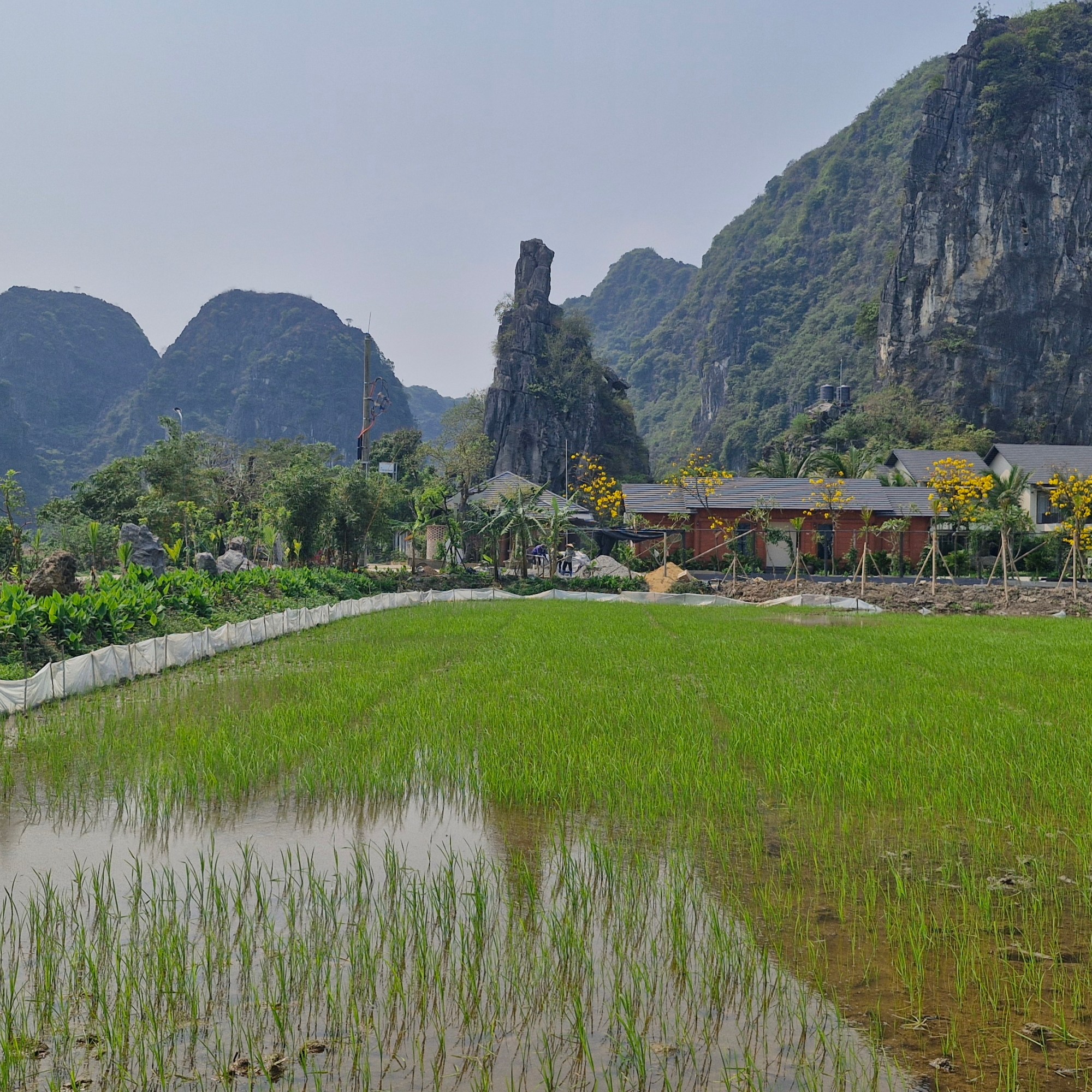 Nous sommes arrivés à Tam Coc en fin d’après-midi. Le bus nous a déposé à l’hôtel qui se situait juste autour du lac.