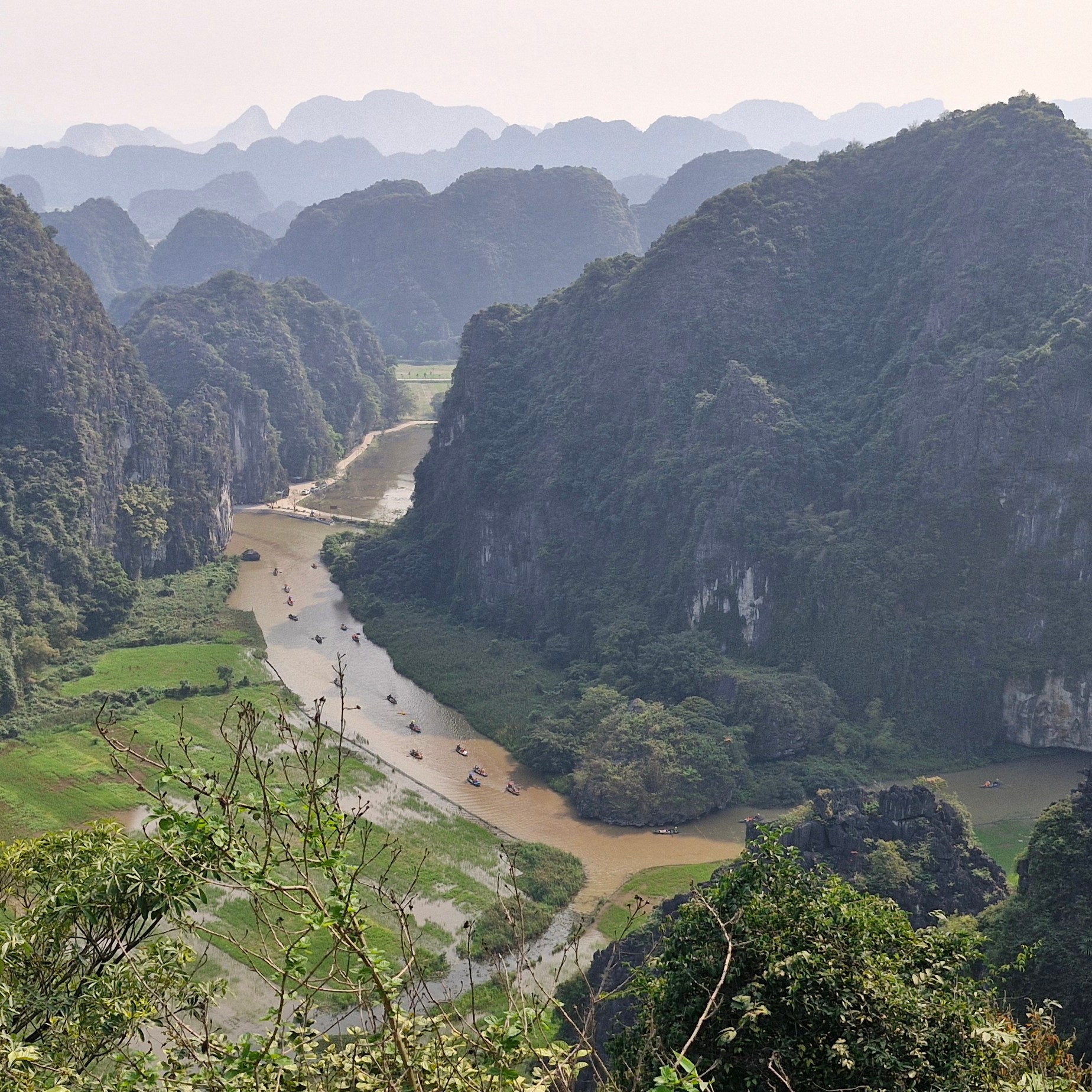Après 45 minutes de marche et une pause pour boire un jus de canne à sucre, nous voilà arrivés en bas du Mont Hang Mua qui offre une vue panoramique sur Tam Coc et ses canaux après avoir gravi 490 marches.