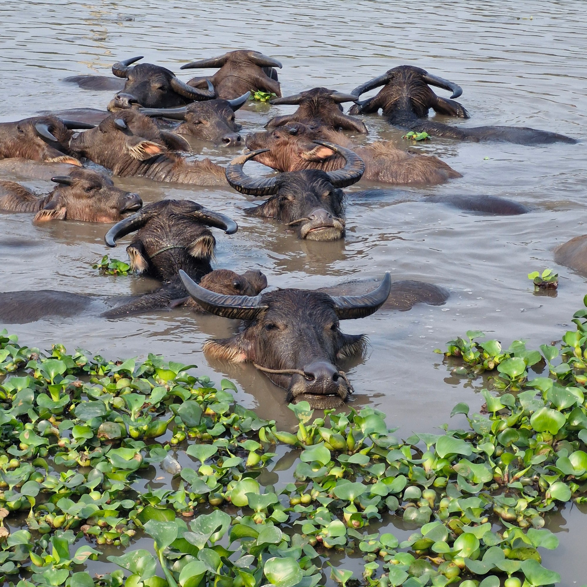 Aussi à pieds, à l’aller comme au retour, nous avons pu profiter des beaux paysages de rizières, et même rencontrer un troupeau de buffles.