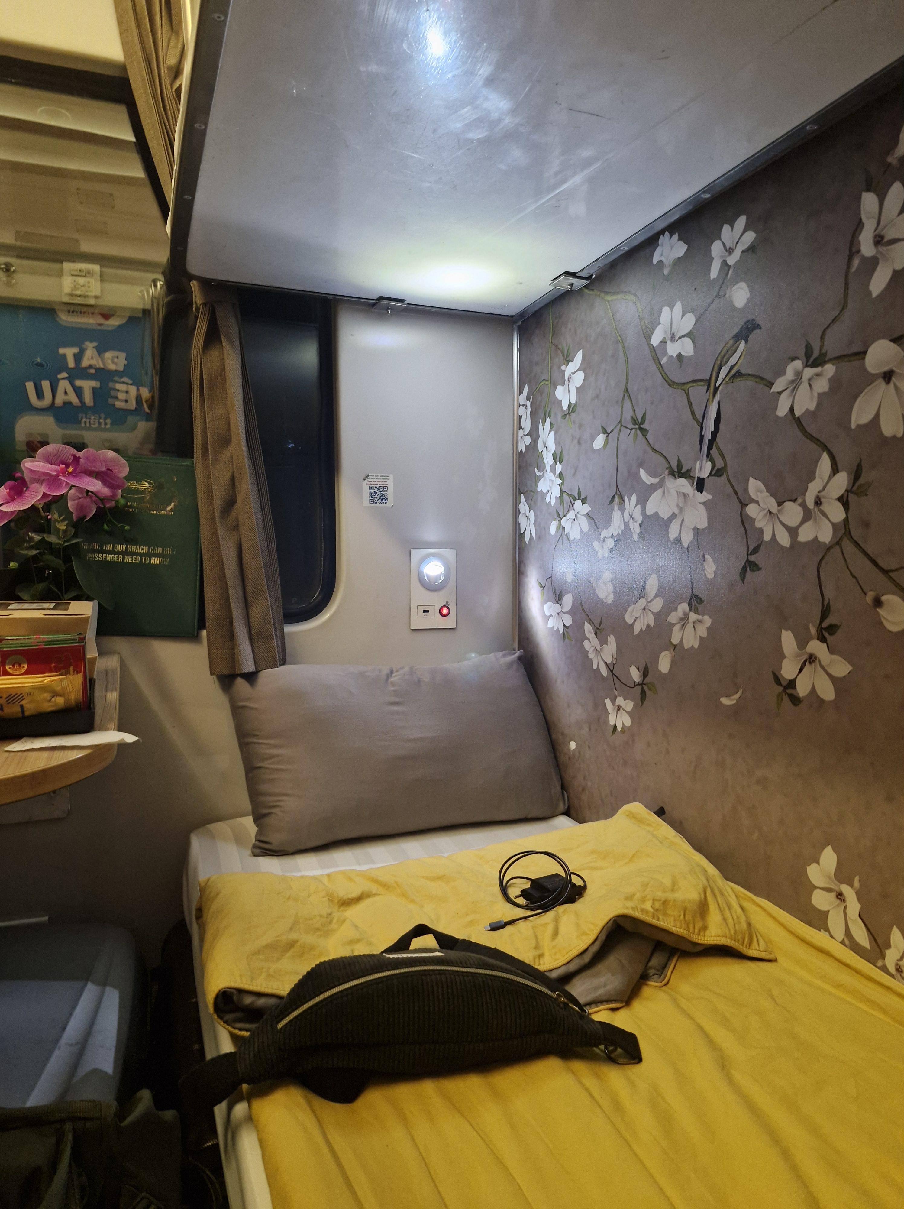 Après dîner, nous avons commandé un taxi avec Grab (j’en parle dans les conseils tout en bas de l’article) qui nous a emmenés à la gare de Ninh Binh où nous prenions un train de nuit.