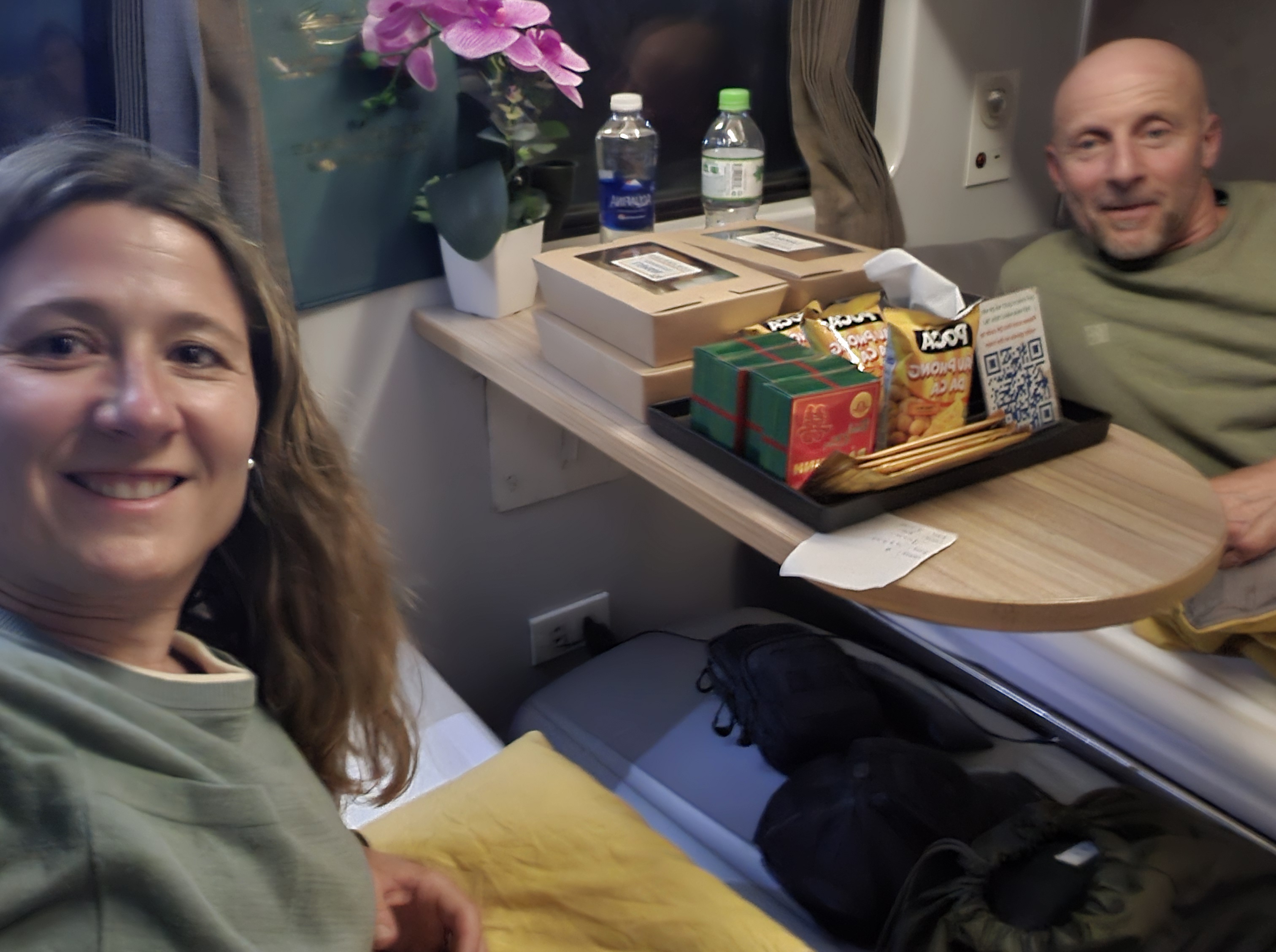 Cela nous a d’ailleurs valu une petite déconvenue, car une fois dans le train d’autres personnes avaient le même numéro de places, écrit sur un coin de papier comme nous. Le personnel a été assez efficace pour gérer le problème, et après une vingtaine de minutes nous étions installés dans nos couchettes.