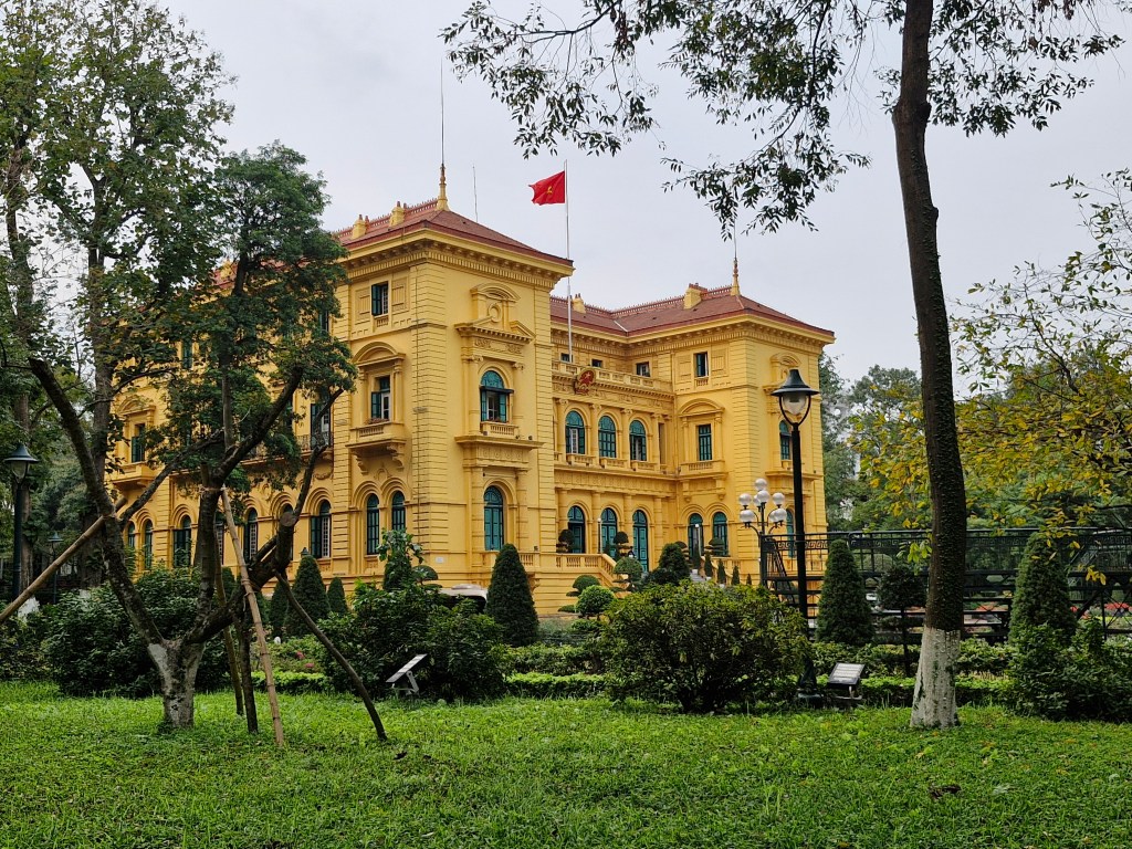 A côté du mausolée se trouve le palais présidentiel qui devait être le lieu de vie et de travail du président, mais Ho Chi Minh a refusé de vivre dans un bâtiment si luxueux.