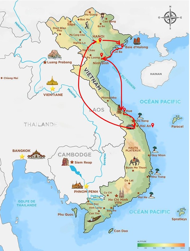 Voici donc notre itinéraire : Hanoï – La baie d’Halong maritime – Tam Coc, la baie d’Halong terrestre – Hué – Hoi An.